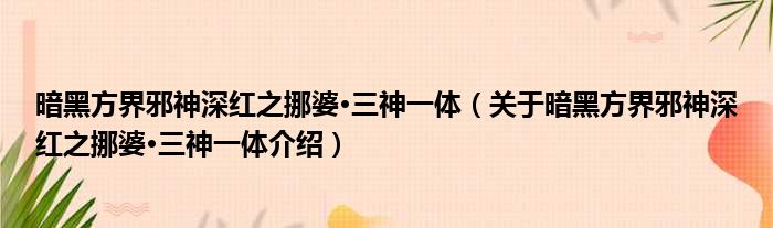 大家好,小钱来为大家解答以上的问题。暗黑方界邪神深红之挪婆·三神一体,关于暗黑方界邪神深红之挪婆·三神一体介绍这个很多人还不知道,现在让我们一起来看看吧!