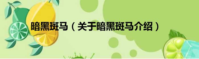 免责声明:本文由用户上传,如有侵权请联系删除!大家好,小钱来为大家解答以上的问题。暗黑斑马,关于暗黑斑马介绍这个很多人还不知道,现在让我们一起来看看吧!