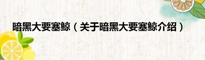 大家好,小钱来为大家解答以上的问题。暗黑大要塞鲸,关于暗黑大要塞鲸介绍这个很多人还不知道,现在让我们一起来看看吧!