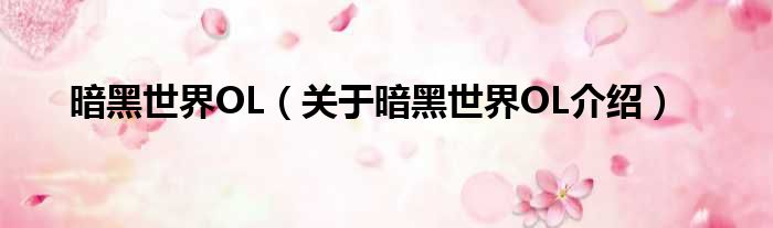 大家好,小钱来为大家解答以上的问题。暗黑世界OL,关于暗黑世界OL介绍这个很多人还不知道,现在让我们一起来看看吧!
