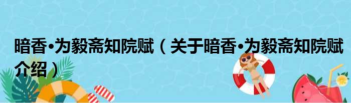 免责声明:本文由用户上传,如有侵权请联系删除!大家好,小钱来为大家解答以上的问题。暗香·为毅斋知院赋,关于暗香·为毅斋知院赋介绍这个很多人还不知道,现在让我们一起来看看吧!