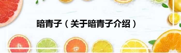 关于暗青子到此分享完毕,希望能帮助到您。