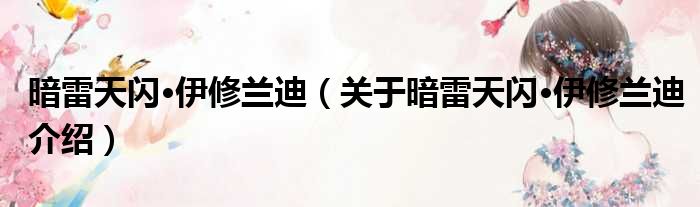 大家好,小钱来为大家解答以上的问题。暗雷天闪·伊修兰迪,关于暗雷天闪·伊修兰迪介绍这个很多人还不知道,现在让我们一起来看看吧!