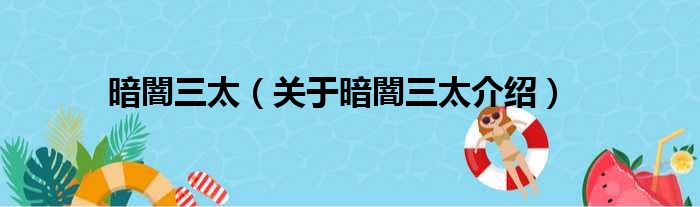 关于暗闇三太到此分享完毕,希望能帮助到您。