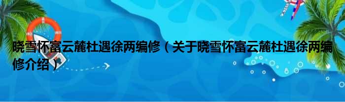 关于晓雪怀富云麓杜遇徐两编修到此分享完毕,希望能帮助到您。