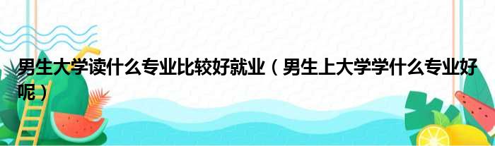 关于男生大学读什么专业比较好就业,男生上大学学什么专业好呢的介绍到此结束,希望对大家有所帮助。