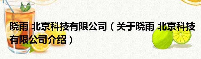 大家好,小钱来为大家解答以上的问题。晓雨 北京科技有限公司,关于晓雨 北京科技有限公司介绍这个很多人还不知道,现在让我们一起来看看吧!