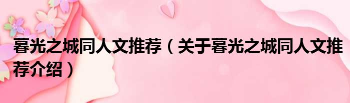 关于暮光之城同人文推荐到此分享完毕,希望能帮助到您。