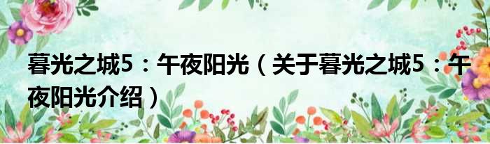 免责声明:本文由用户上传,如有侵权请联系删除!大家好,小钱来为大家解答以上的问题。暮光之城5:午夜阳光,关于暮光之城5:午夜阳光介绍这个很多人还不知道,现在让我们一起来看看吧!