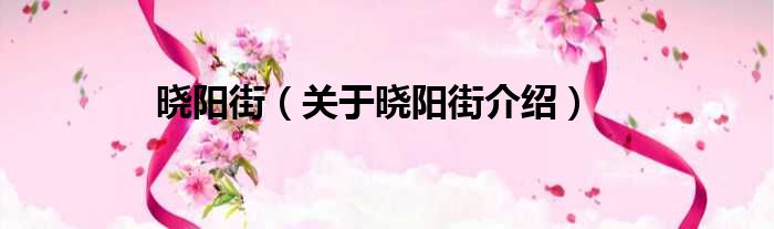 大家好,小钱来为大家解答以上的问题。晓阳街,关于晓阳街介绍这个很多人还不知道,现在让我们一起来看看吧!