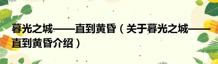 关于暮光之城——直到黄昏到此分享完毕,希望能帮助到您。