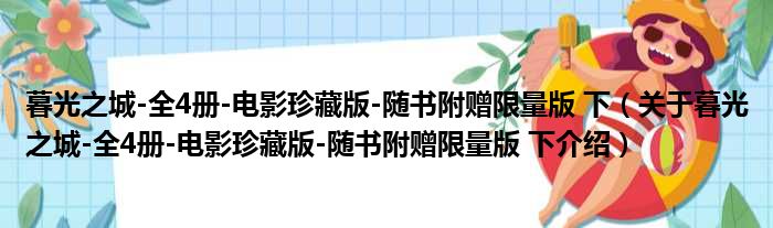 免责声明:本文由用户上传,如有侵权请联系删除!大家好,小钱来为大家解答以上的问题。暮光之城-全4册-电影珍藏版-随书附赠限量版 下,关于暮光之城-全4册-电影珍藏版-随书附赠限量版 下介绍这个很多人还不知道,现在让我们一起来看看吧!