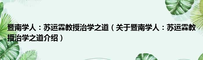 关于暨南学人:苏运霖教授治学之道到此分享完毕,希望能帮助到您。
