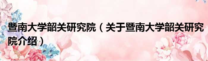 关于暨南大学韶关研究院到此分享完毕,希望能帮助到您。