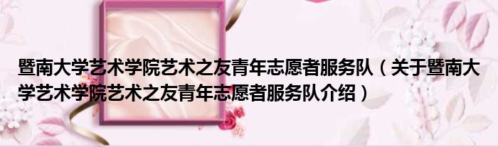 关于暨南大学艺术学院艺术之友青年志愿者服务队到此分享完毕,希望能帮助到您。