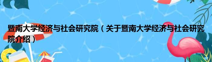 关于暨南大学经济与社会研究院到此分享完毕,希望能帮助到您。