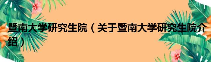 关于暨南大学研究生院到此分享完毕,希望能帮助到您。