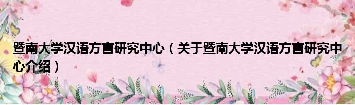 关于暨南大学汉语方言研究中心到此分享完毕,希望能帮助到您。