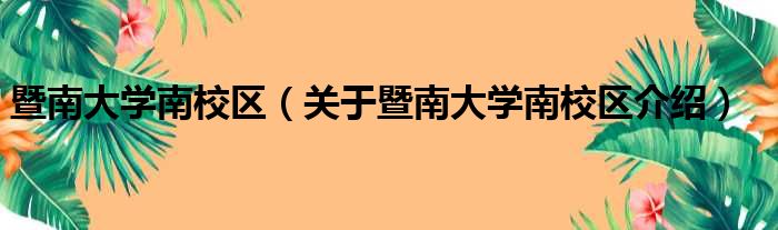 免责声明:本文由用户上传,如有侵权请联系删除!大家好,小钱来为大家解答以上的问题。暨南大学南校区,关于暨南大学南校区介绍这个很多人还不知道,现在让我们一起来看看吧!