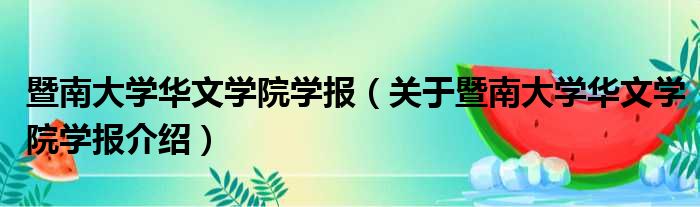 关于暨南大学华文学院学报到此分享完毕,希望能帮助到您。