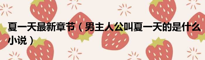 关于夏一天最新章节,男主人公叫夏一天的是什么小说的介绍到此结束,希望对大家有所帮助。
