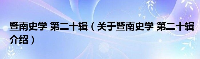 免责声明:本文由用户上传,如有侵权请联系删除!大家好,小钱来为大家解答以上的问题。暨南史学 第二十辑,关于暨南史学 第二十辑介绍这个很多人还不知道,现在让我们一起来看看吧!