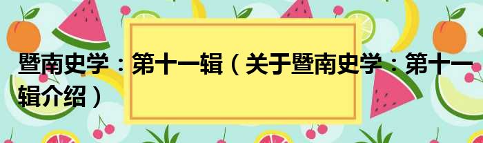 免责声明:本文由用户上传,如有侵权请联系删除!大家好,小钱来为大家解答以上的问题。暨南史学:第十一辑,关于暨南史学:第十一辑介绍这个很多人还不知道,现在让我们一起来看看吧!