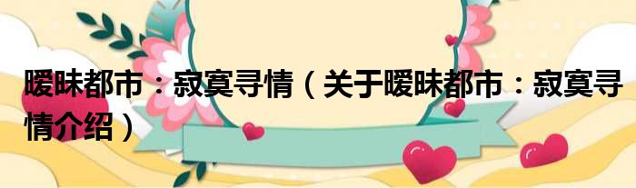 免责声明:本文由用户上传,如有侵权请联系删除!大家好,小钱来为大家解答以上的问题。暧昧都市:寂寞寻情,关于暧昧都市:寂寞寻情介绍这个很多人还不知道,现在让我们一起来看看吧!