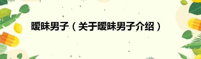 免责声明:本文由用户上传,如有侵权请联系删除!大家好,小钱来为大家解答以上的问题。暧昧男子,关于暧昧男子介绍这个很多人还不知道,现在让我们一起来看看吧!
