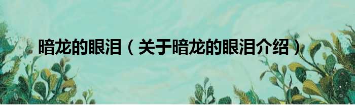 免责声明:本文由用户上传,如有侵权请联系删除!大家好,小钱来为大家解答以上的问题。暗龙的眼泪,关于暗龙的眼泪介绍这个很多人还不知道,现在让我们一起来看看吧!