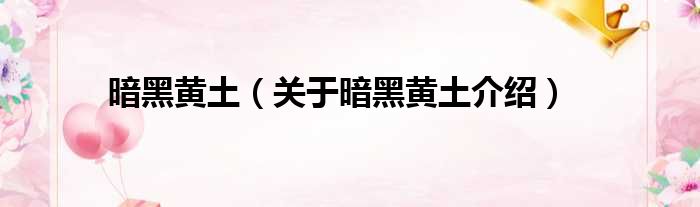 免责声明:本文由用户上传,如有侵权请联系删除!大家好,小钱来为大家解答以上的问题。暗黑黄土,关于暗黑黄土介绍这个很多人还不知道,现在让我们一起来看看吧!