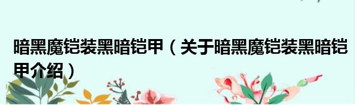 关于暗黑魔铠装黑暗铠甲到此分享完毕,希望能帮助到您。