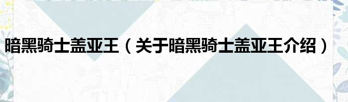 大家好,小钱来为大家解答以上的问题。暗黑骑士盖亚王,关于暗黑骑士盖亚王介绍这个很多人还不知道,现在让我们一起来看看吧!