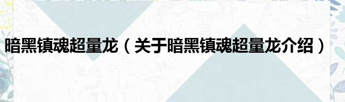 大家好,小钱来为大家解答以上的问题。暗黑镇魂超量龙,关于暗黑镇魂超量龙介绍这个很多人还不知道,现在让我们一起来看看吧!