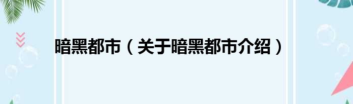 免责声明:本文由用户上传,如有侵权请联系删除!大家好,小钱来为大家解答以上的问题。暗黑都市,关于暗黑都市介绍这个很多人还不知道,现在让我们一起来看看吧!