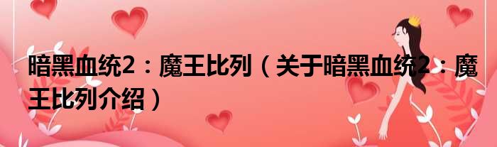 免责声明:本文由用户上传,如有侵权请联系删除!大家好,小钱来为大家解答以上的问题。暗黑血统2:魔王比列,关于暗黑血统2:魔王比列介绍这个很多人还不知道,现在让我们一起来看看吧!