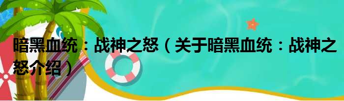 大家好,小钱来为大家解答以上的问题。暗黑血统:战神之怒,关于暗黑血统:战神之怒介绍这个很多人还不知道,现在让我们一起来看看吧!
