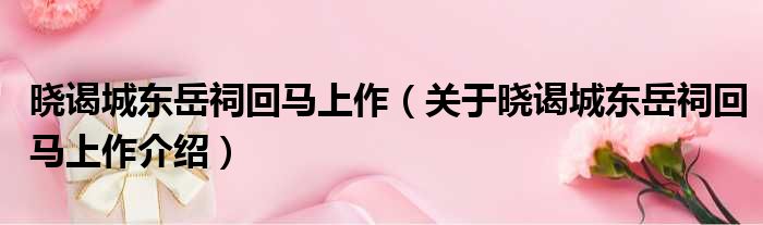 关于晓谒城东岳祠回马上作到此分享完毕,希望能帮助到您。