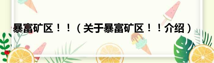 大家好,小钱来为大家解答以上的问题。暴富矿区!!,关于暴富矿区!!介绍这个很多人还不知道,现在让我们一起来看看吧!