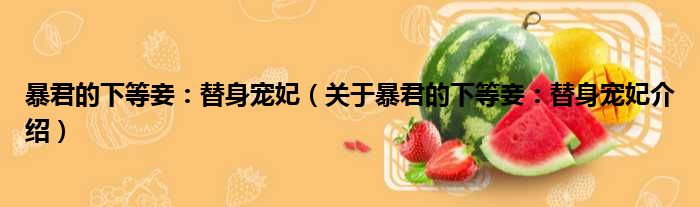 关于暴君的下等妾:替身宠妃到此分享完毕,希望能帮助到您。