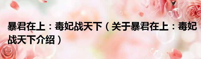 免责声明:本文由用户上传,如有侵权请联系删除!大家好,小钱来为大家解答以上的问题。暴君在上:毒妃战天下,关于暴君在上:毒妃战天下介绍这个很多人还不知道,现在让我们一起来看看吧!
