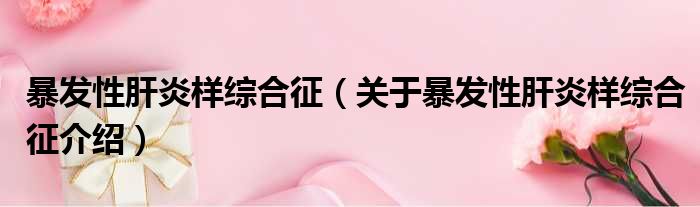 关于暴发性肝炎样综合征到此分享完毕,希望能帮助到您。