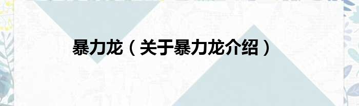 免责声明:本文由用户上传,如有侵权请联系删除!大家好,小钱来为大家解答以上的问题。暴力龙,关于暴力龙介绍这个很多人还不知道,现在让我们一起来看看吧!