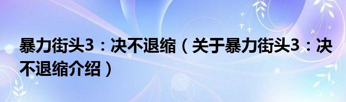 关于暴力街头3:决不退缩到此分享完毕,希望能帮助到您。