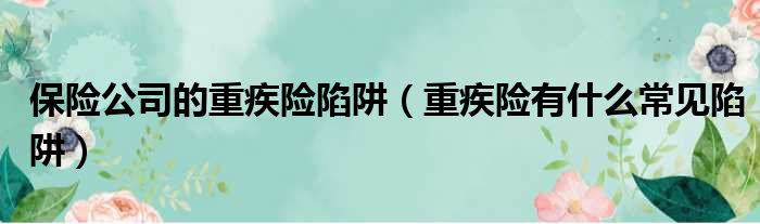 大家好,小皮来为大家解答以上问题。保险公司的重疾险陷阱,重疾险有什么常见陷阱这个很多人还不清楚,现在一起跟着小编来瞧瞧吧!