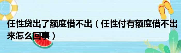关于任性贷出了额度借不出,任性付有额度借不出来怎么回事的介绍到此结束,希望对大家有所帮助。