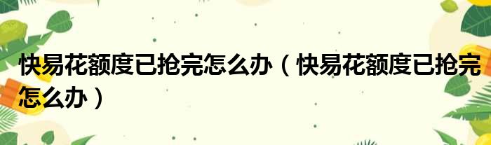 关于快易花额度已抢完怎么办,快易花额度已抢完怎么办的介绍到此结束,希望对大家有所帮助。