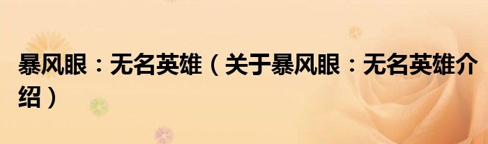 免责声明:本文由用户上传,如有侵权请联系删除!大家好,小钱来为大家解答以上的问题。暴风眼:无名英雄,关于暴风眼:无名英雄介绍这个很多人还不知道,现在让我们一起来看看吧!
