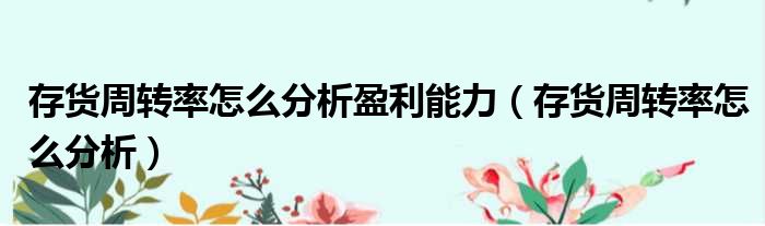 关于存货周转率怎么分析盈利能力,存货周转率怎么分析的介绍到此结束,希望对大家有所帮助。