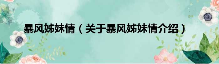 免责声明:本文由用户上传,如有侵权请联系删除!大家好,小钱来为大家解答以上的问题。暴风姊妹情,关于暴风姊妹情介绍这个很多人还不知道,现在让我们一起来看看吧!